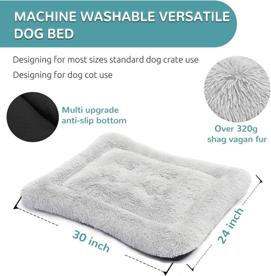 Calming Dog Bed Crate Pads, Dog Crate Bed Large Dogs, Dog Crate Mats Machine Washable Grey Medium